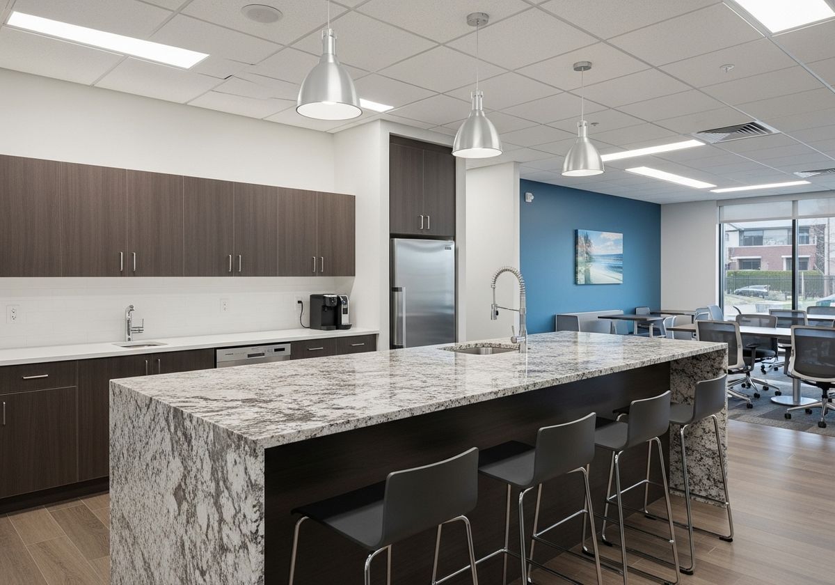 Granite remains a favored option for commercial spaces due to its exceptional durability and resistance to scratches, heat, and stains. As a countertop installer knows, this makes it ideal for high-traffic areas such as reception desks, conference rooms, and breakrooms. Available in a wide range of colors and patterns, granite can complement any design aesthetic, from traditional to contemporary.