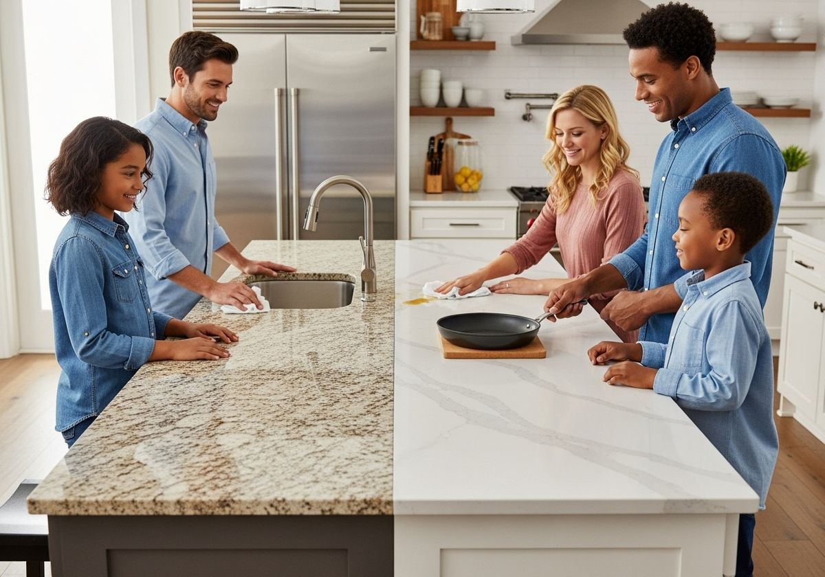 Both quartz and granite are highly durable, but there are some key differences in their maintenance needs. Granite is porous and requires sealing upon installation and periodically thereafter to prevent staining and bacterial growth. Quartz is non-porous, making it resistant to stains, scratches, and bacteria. This makes quartz a lower-maintenance option for busy homeowners.